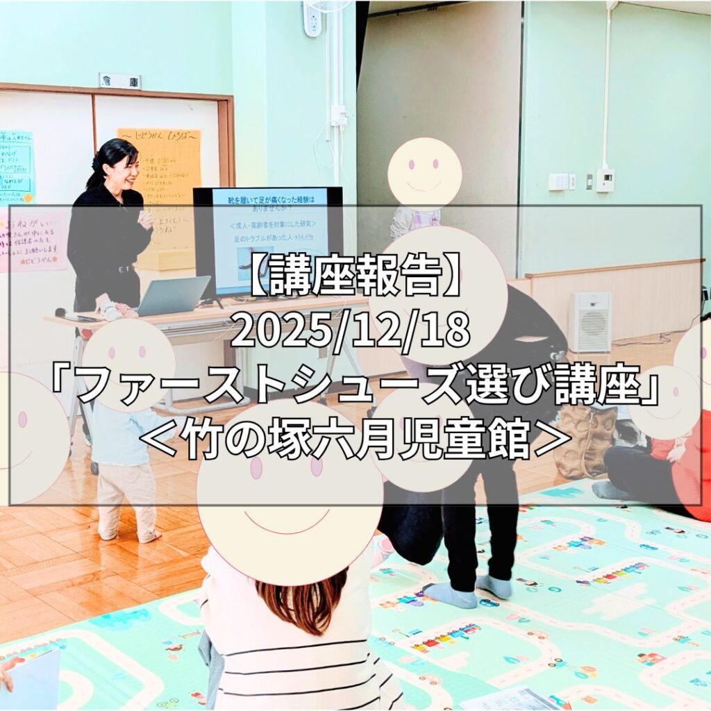 理学療法士で研究員、そして2児の母の春日井翔子です!このブログでは、子どもの足の健康を守る靴選びや教育について発信しています! 足立区竹の塚六月児童館にて講座を開催 本日、2025年12月18日、足立区竹の塚六月児童館にて「ファーストシューズの選び...
